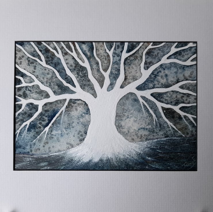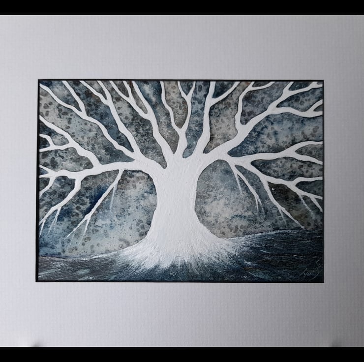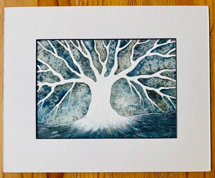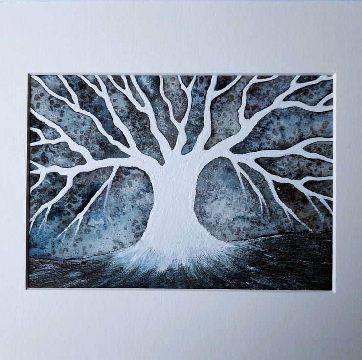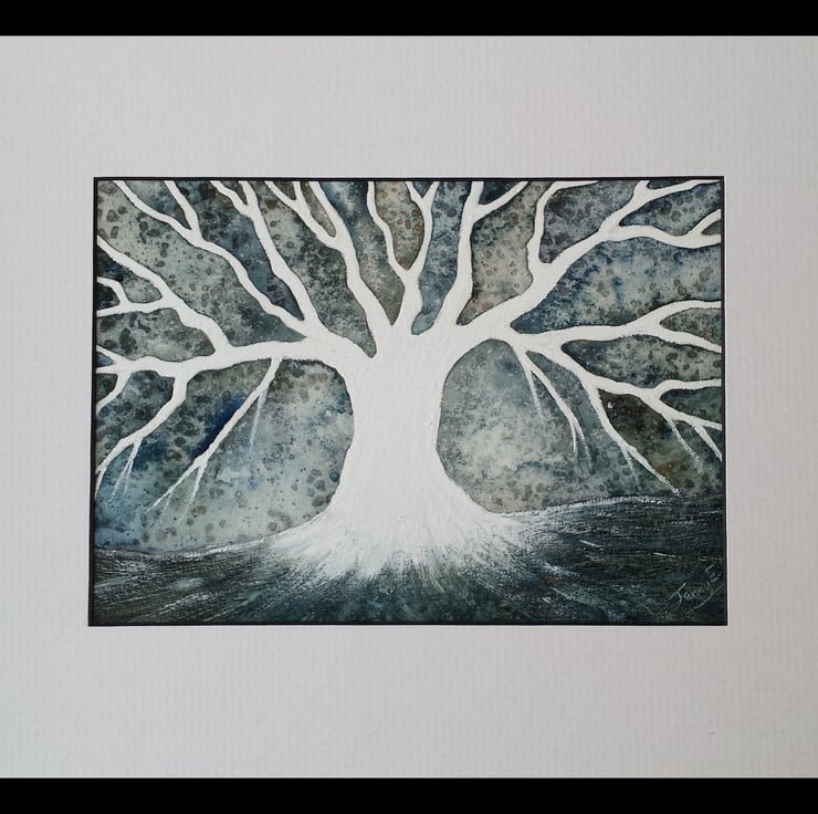 Light in the Moodiness, an evocative and atmospheric painting which reflects a need for hope and light with it's symbolic 'tree of light'.