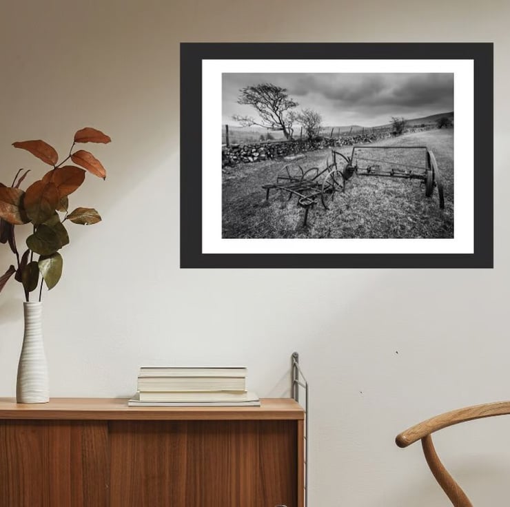 The photo for this limited edition print was taken in a farm field whilst out walking just outside Peter Tavy in Dartmoor National Park. I have no idea what this machine did but its position in the field and the background makes for an interesting black & white image.