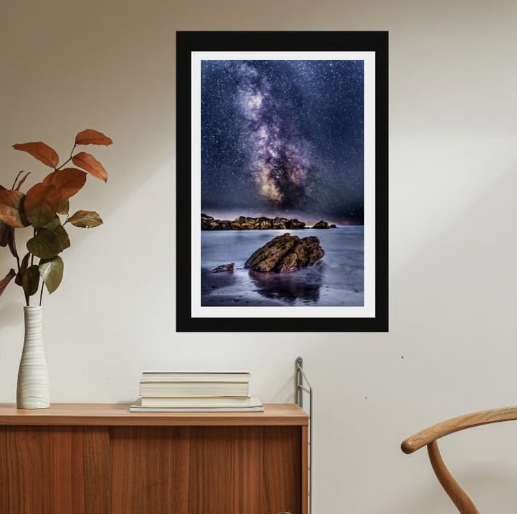 Stunning night sky print of the Milky Way taken at Sharrow Point in Cornwall. It is one of my favourite places to photograph and is one of my go to places for Astrophotography. This part of the south east Cornish coastline has lots to offer the photographer.