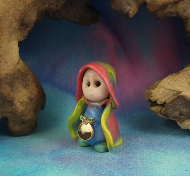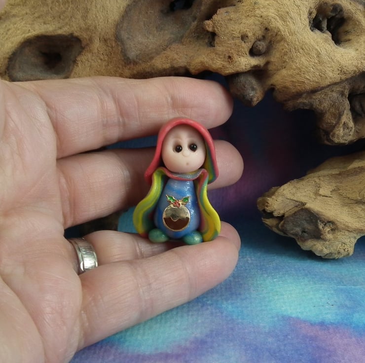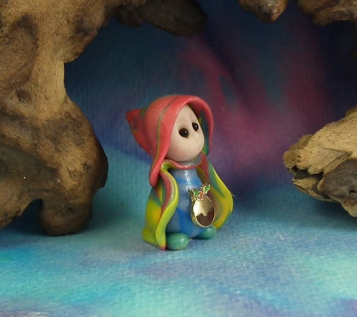 This is a 'one of a kind' creation having been entirely handmade without the use of moulds here at my studio on the Sussex Coast. Modelled with artist blend polymers, blushed before sealing with lacquer, Ghili has sparkling black onyx eyes and variegated garden robes. Ghili the Garden Gnome is just one and a half inches tall.