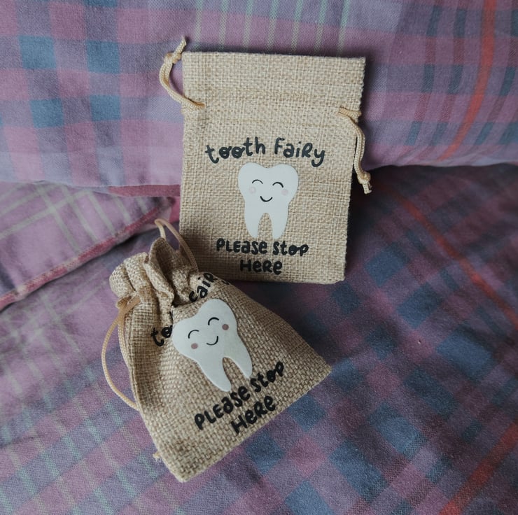 These little drawstring jute bags are a great gift to give to your child to make sure they never lose their teeth under their pillow for when they get a visit from the tooth fairy. The bag even comes with a super cute tooth sticker.