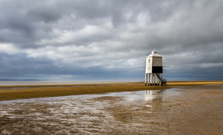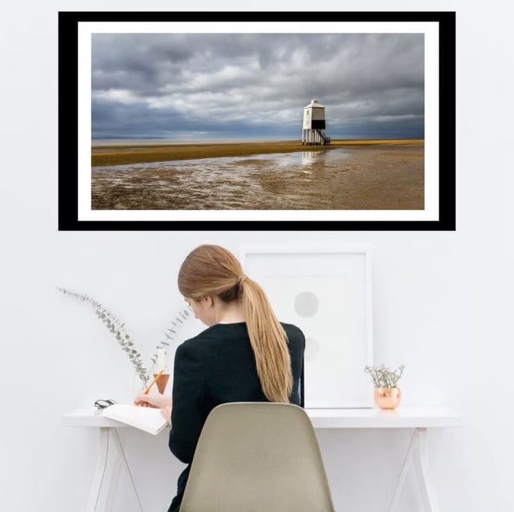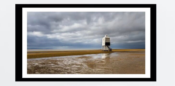 Fine art panoramic photo print of the Low Lighthouse at Burnham on Sea - an iconic building which sits right on the beach and just asks to be photographed. It was built in the early 1800's and was recently refurbished. The photo was taken at low tide with some dramatic weather approaching. It looks good with the tide in or out and is great in some interesting weather conditions or nice light.