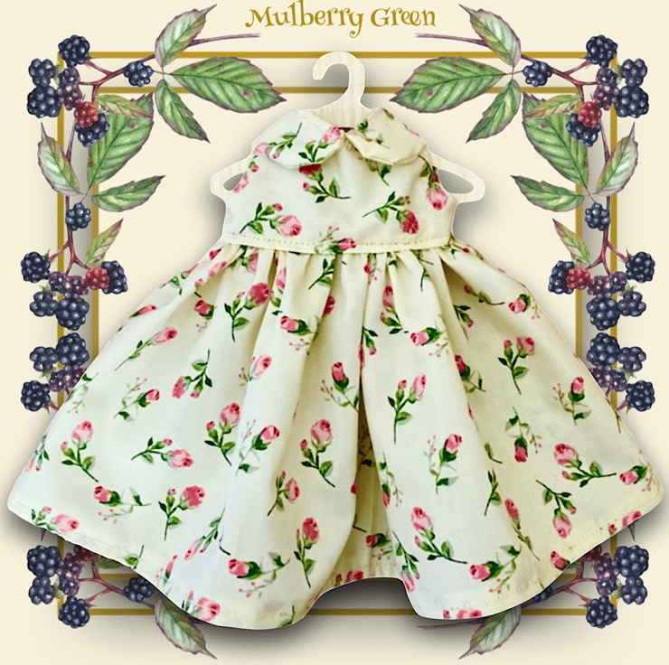 Mulberry Green is all about a time, now gone, but not so very long ago, when children had a great deal of freedom to explore their surroundings and use their imagination in play. A time when the world moved at a slower pace and things were made to last. To celebrate this heritage, wherever possible, I use traditional crafts and materials to create my dolls and outfits.
