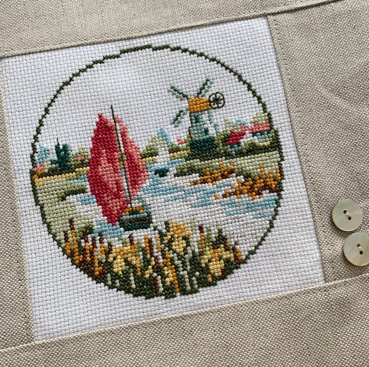 I found this sweet cross stitch at a car boot sale last summer and it reminded me of summer days on the Norfolk broads.