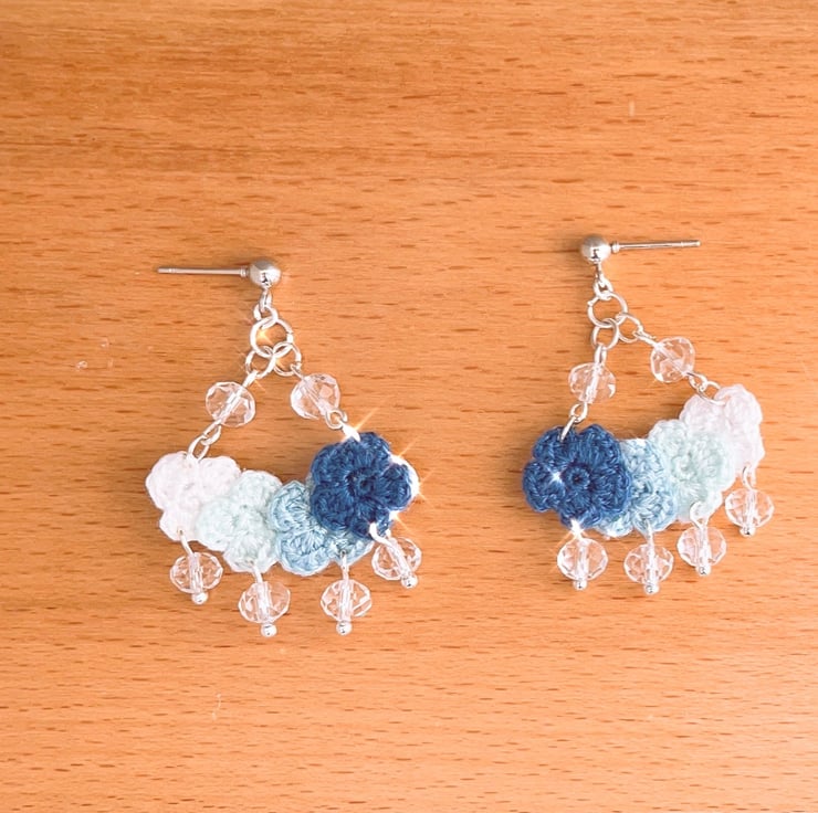Earrings made with 6mm crystal glass beads and Embroidery Threads.