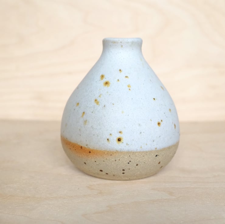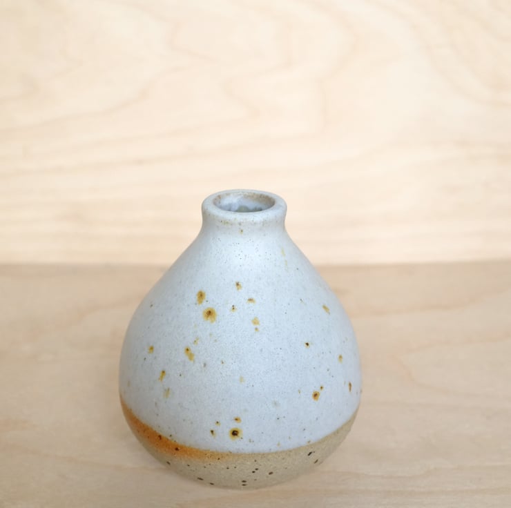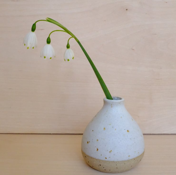 Hand thrown, flecked stoneware, miniature bud vase glazed with matt white.