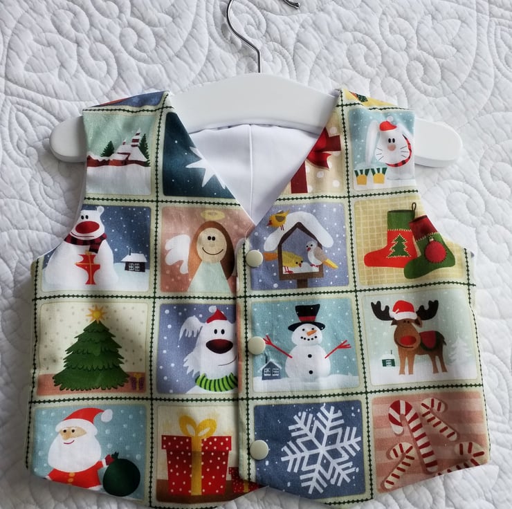 I first made this waistcoat in September 2022, it sold very well. The printed fabric design is lovely it is like a Christmas story book