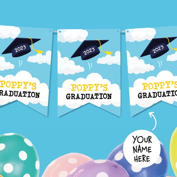 Brighten up your loved ones special day with this Personalised Graduation Banner. Each bunting includes the persons name printed on 8 premium matte card flags. It's the perfect addition to a university party and is bound to put a smile on their face!