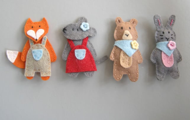 pre cut wool mix felt, trims and decorations, stuffing, embroidery thread, easy to follow instructoins, pins and a needle just add scissors.