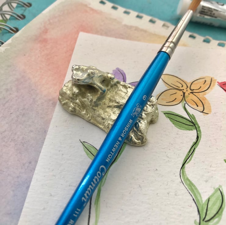 Our little brush rests are each hand made from pewter from our own mould so completely unique. They are very cute, lovely to handle and a really different gift to give or send. These are a really chunky and weighty style.