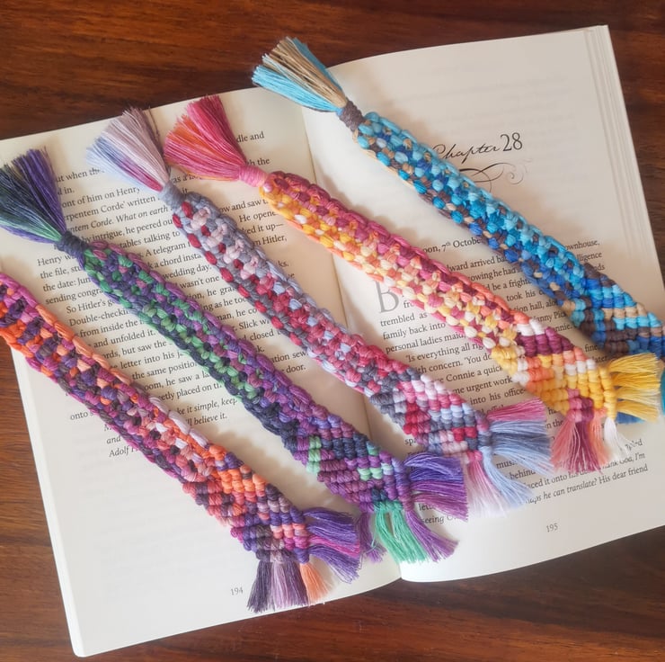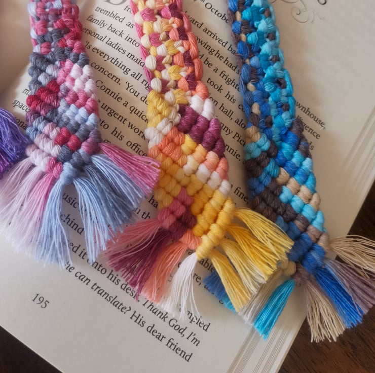 These are handmade. Colour combination of this bookmark will be kept but each one will be unique due to colour of this cord.