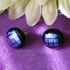 I purchased an assortment of dichroic glass in varied colours and designs. I particularly liked one in hot pink with a black wavy line. I soon got to work making these earrings. Hot pink dichroic tops with a black Bullseye base.
