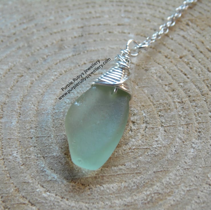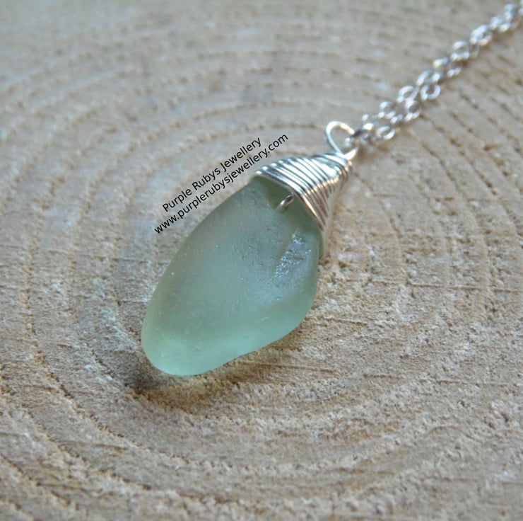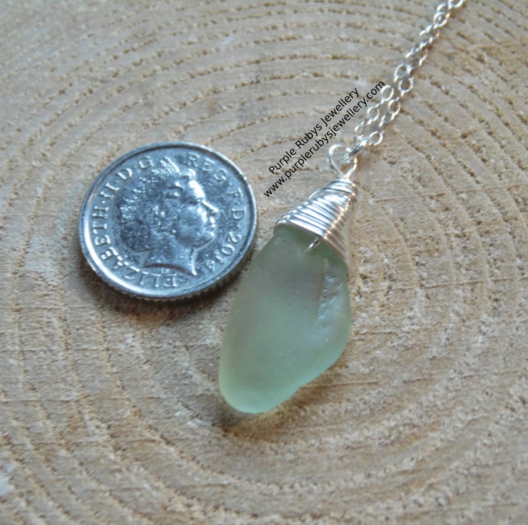 A beautiful of pale sage green Cornish sea glass wrapped with silver wire.