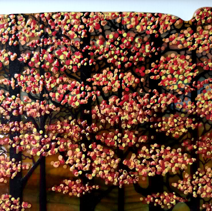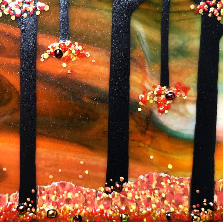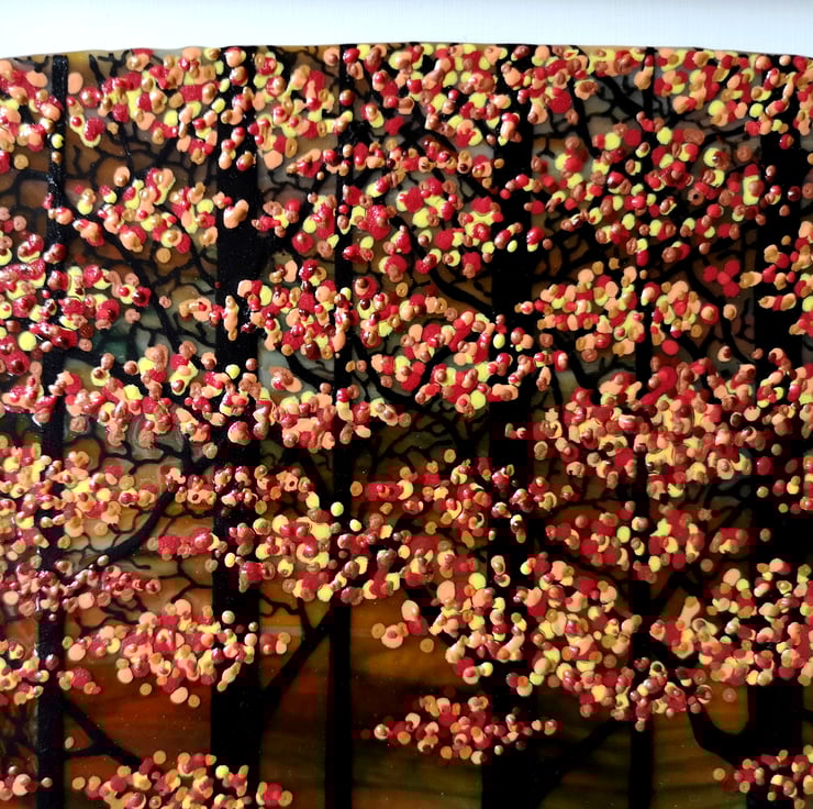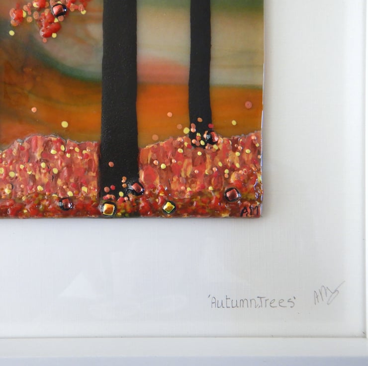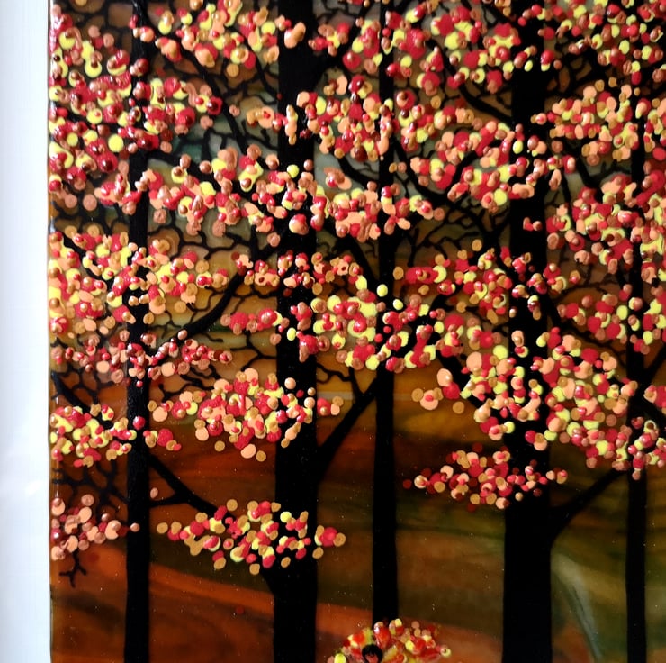 HANDMADE FUSED GLASS 'AUTUMN TREES' PICTURE.