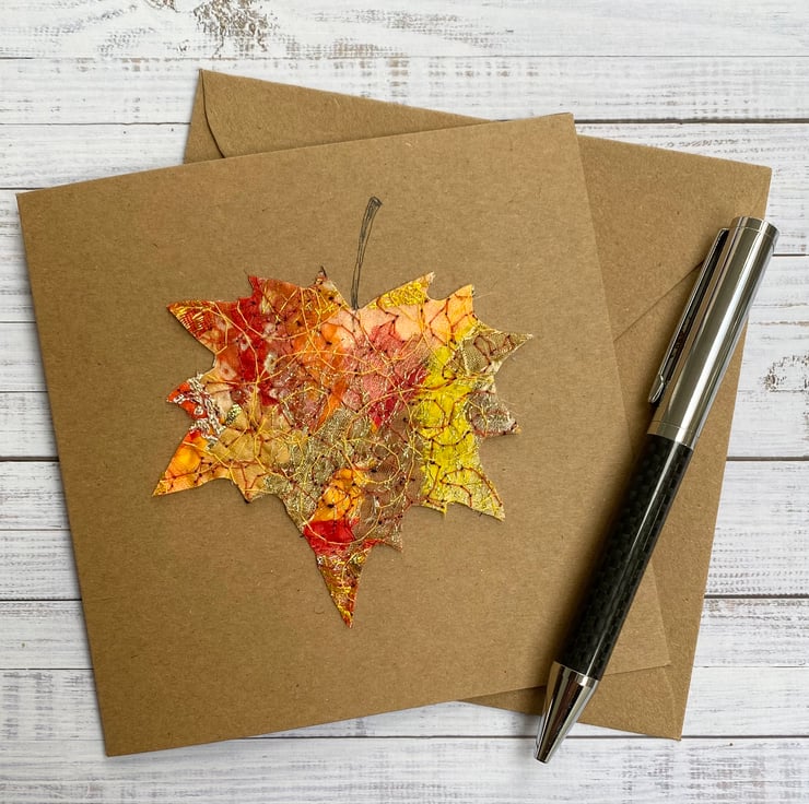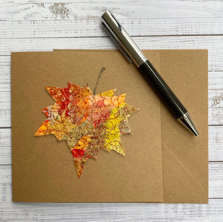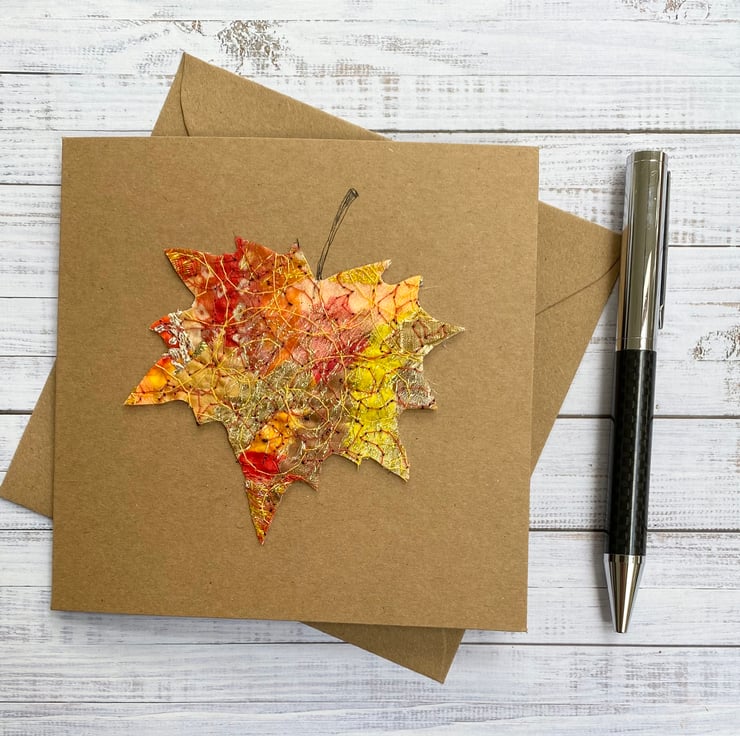 This dazzling free motion embroidery card is made with up-cycled fabrics. The flowers are Upholstery fabrics and the rest is from scraps. It’s perfect for a Birthday card, Greetings card or for someone very special. It is blank inside making it ideal for any occasion. This recycled brown card measures 13.5 x 13.5cm, comes with a brown envelop and in a plastic cover for protection.