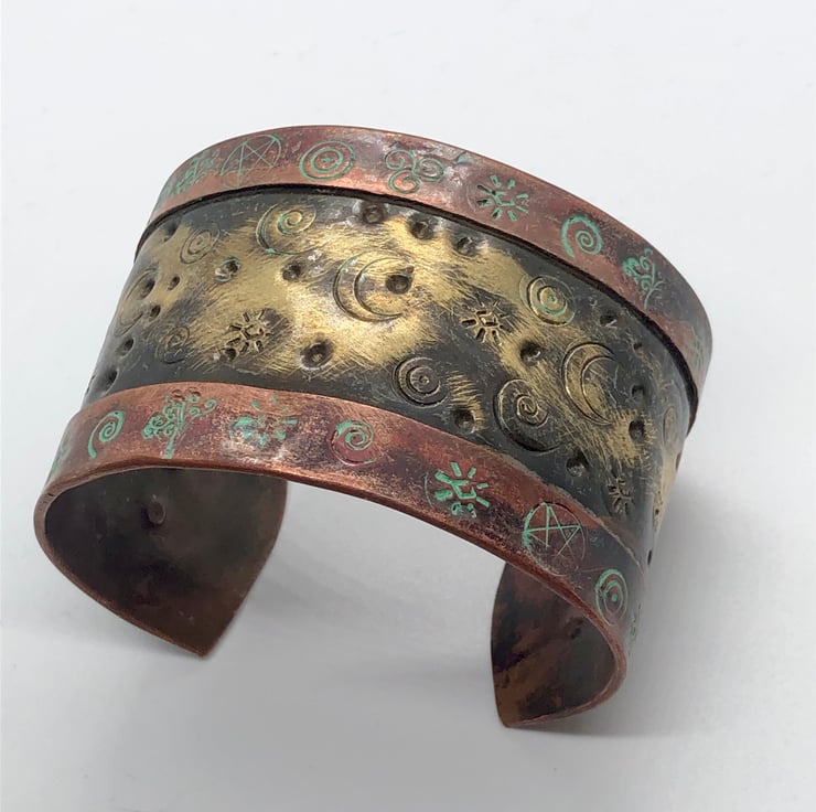 Handcrafted, one off, Copper and Brass cuff. Hand stamped two tone hardwearing cuff/bracelet.