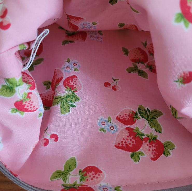 Measures 22cm wide x 19cm deep. Zip opening measures 20cm wide.