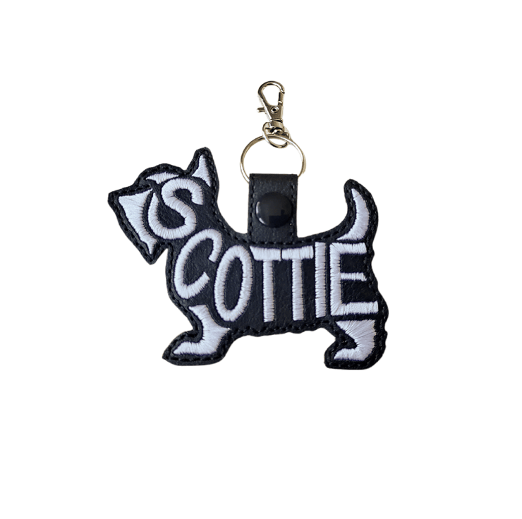 Are you a fan of the Scottish Terrier? Then you'll love the Scottie Word Art Keyring. Made from faux leather and featuring an intricate embroidered design, it's sure to draw attention. Lightweight and stylish, keeping your keys neat has never been easier. Not only is it perfect for yourself, but you can give it as a unique gift to your friends and family.