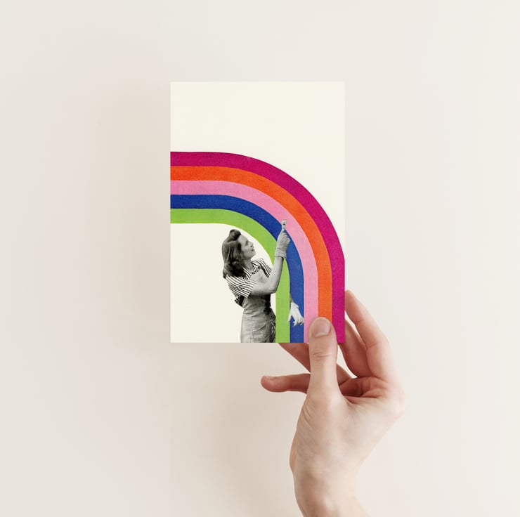 A retro rainbow card celebrating the LGBTQ community with it's positive message. Paint a rainbow!
