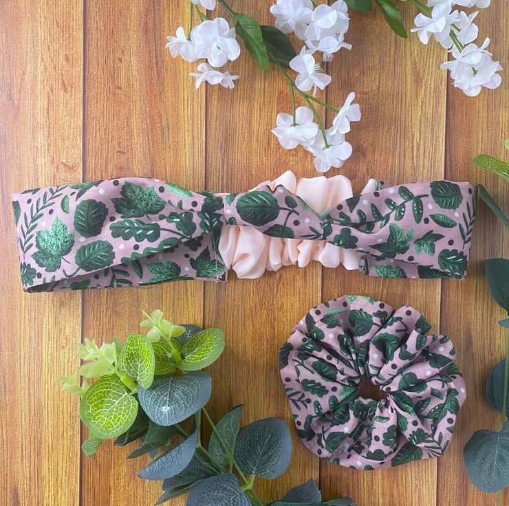 The Green Foliage headband and scrunchie giftset is that ideal solution for a lover of pretty patterns and hair accessories. Handmade right here in Wales, our giftsets aim to be that perfect addition to the beauty routine or outfit. The green foliage pattern was inspired by my local wildlife, and is part of the Nature collection. The set includes a soft headband with a cute knot at the front, and a lovely scrunchie, perfect for day-to-day use.