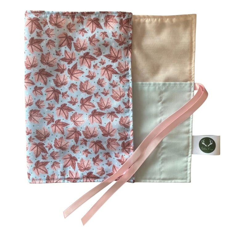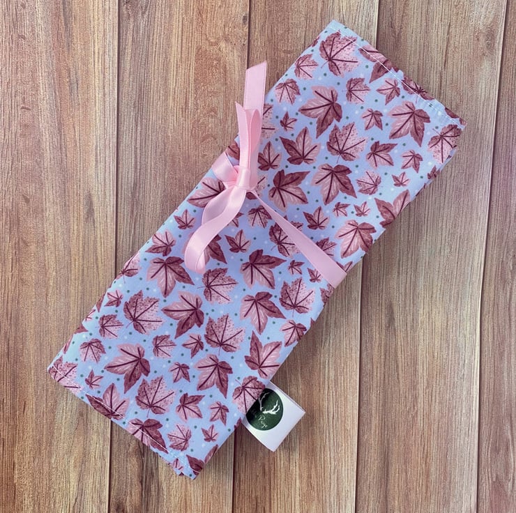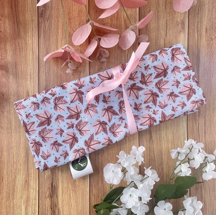 Pink Leafy Brush Wrap Storage for Pens, Pencils, Makeup Brushes, Brush Roll, art
