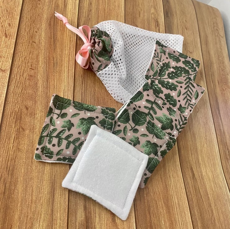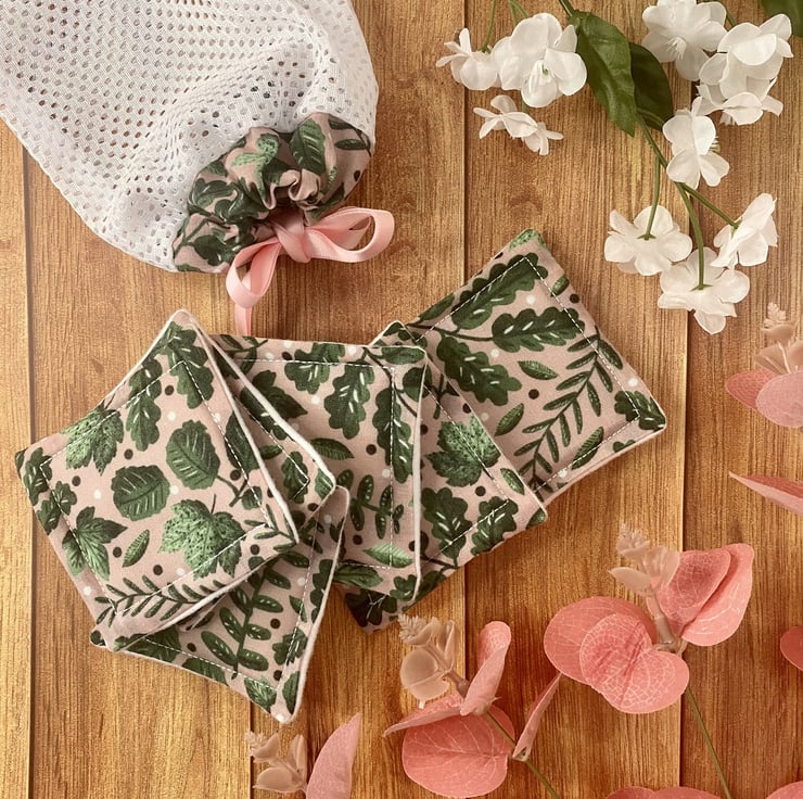 Our reusable makeup removal pads and washbag giftset is the perfect solution for the environmentally-conscious, simply use, wash and reuse. The cute foliage pattern features across both these products, handmade right here in Wales.