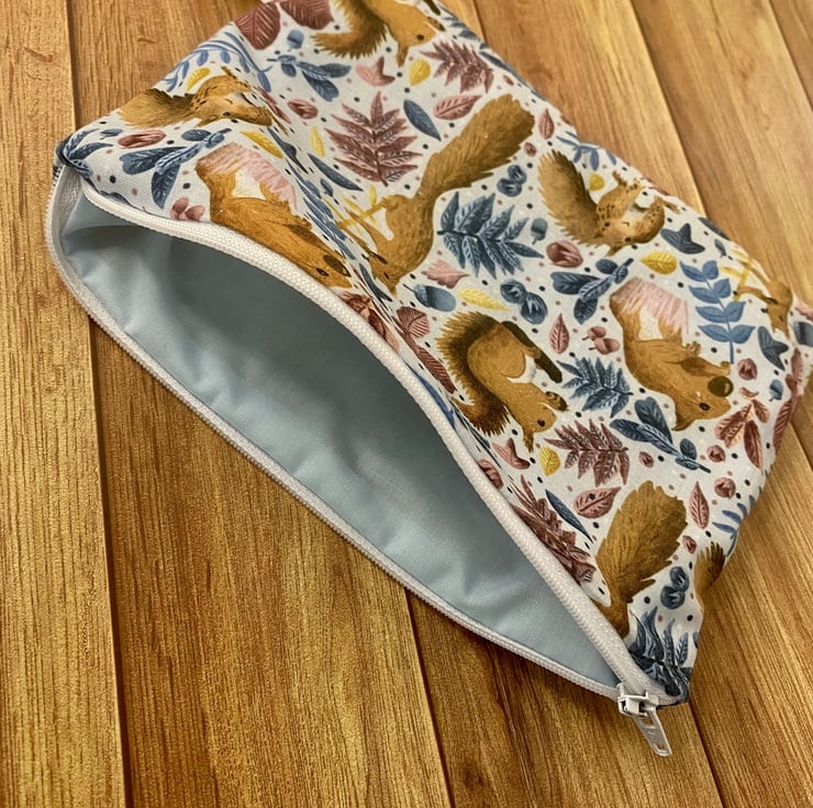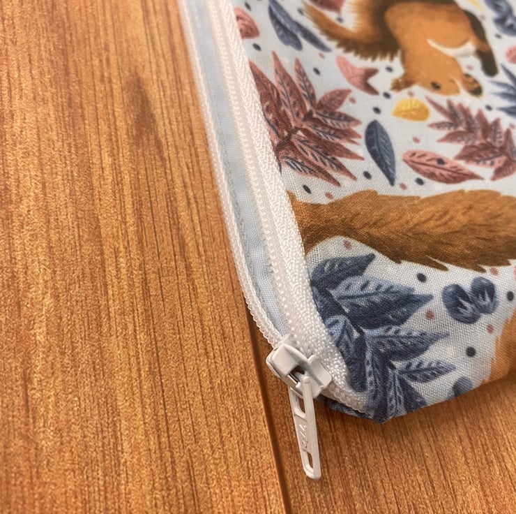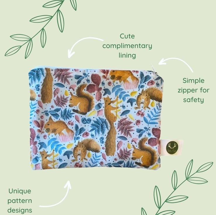 Organize your essentials with our charming Red Squirrel Storage Pouch, perfect for wildlife enthusiasts and nature lovers. This versatile pouch, featuring a bespoke red squirrel pattern designed by Tahlia Paige, is ideal as an animal pencil case, makeup bag, or handy storage solution.