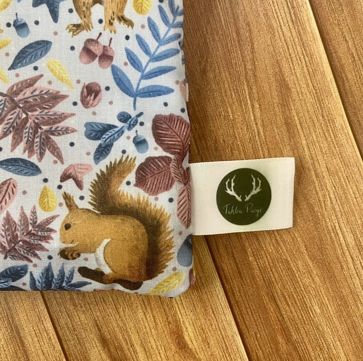 Unique Design: Adorned with a bespoke red squirrel pattern by Tahlia Paige.