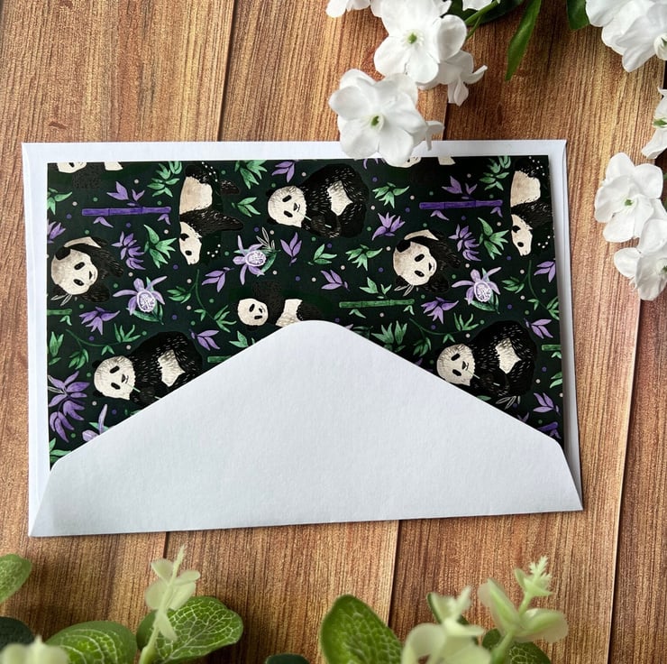 Our Panda greetings card shows our Giant Panda in it's environment, and matches perfectly with a varied set of our products. Whether you want the full Panda set or just a cute greeting to send to a friend, this card is the ideal way to do so.