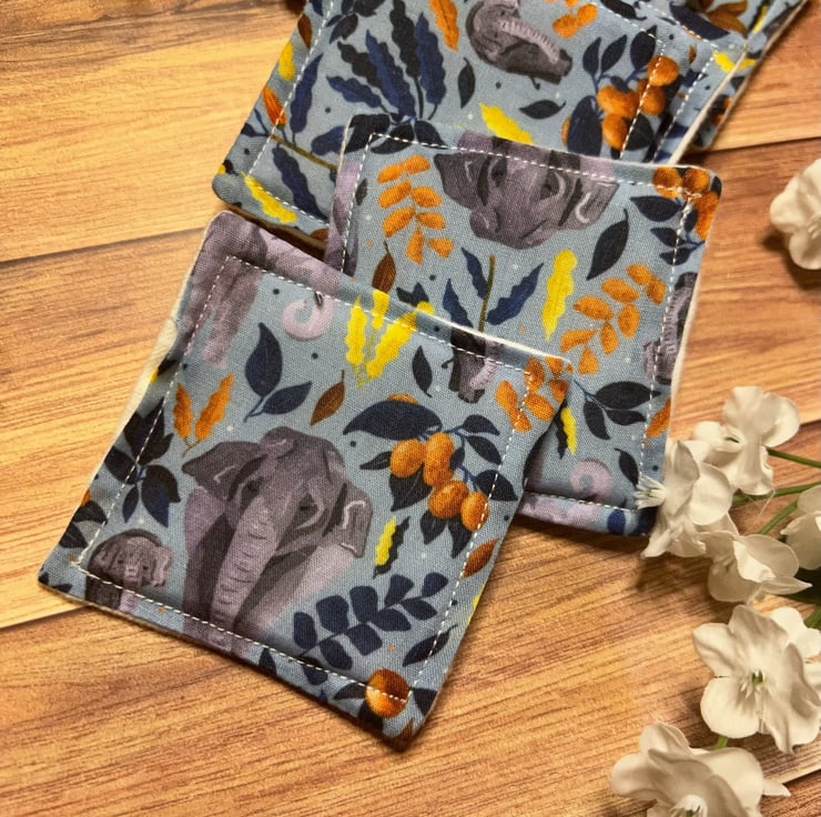 Our reusable makeup removal pads and washbag giftset is the perfect solution for the environmentally-conscious, simply use, wash and reuse! The cute Asian Elephant pattern features across all products, handmade right here in Wales.