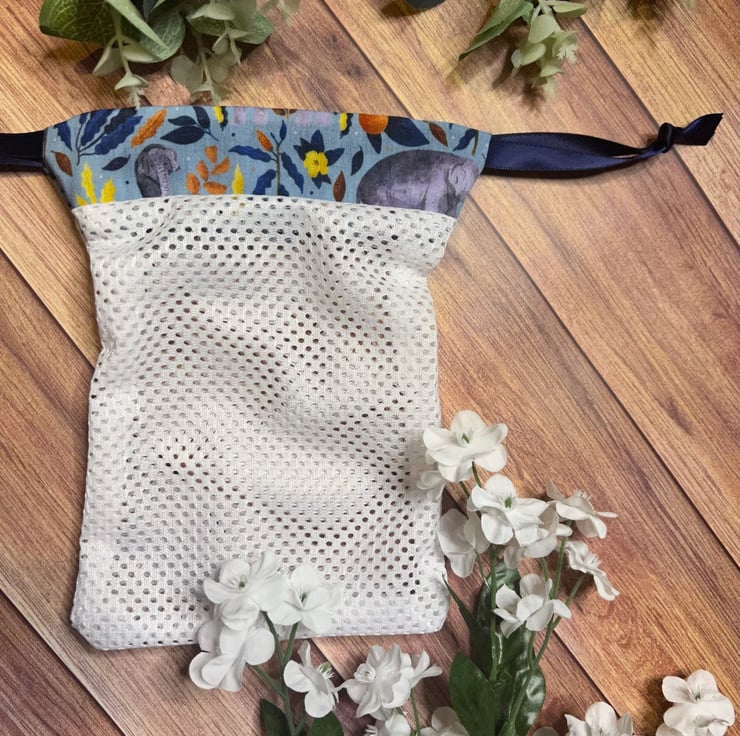 Practical but pretty, our washbags can be bought individually or as a set with the reusable makeup removal pads. The strip of pattern at the top makes it a cute match to other products in the range, with the white netting for functional washing. Using a drawstring effect at the top, simply tie a double bow and tuck the ribbons in for a secure wash.