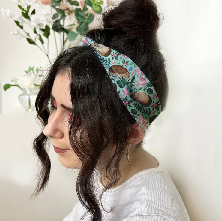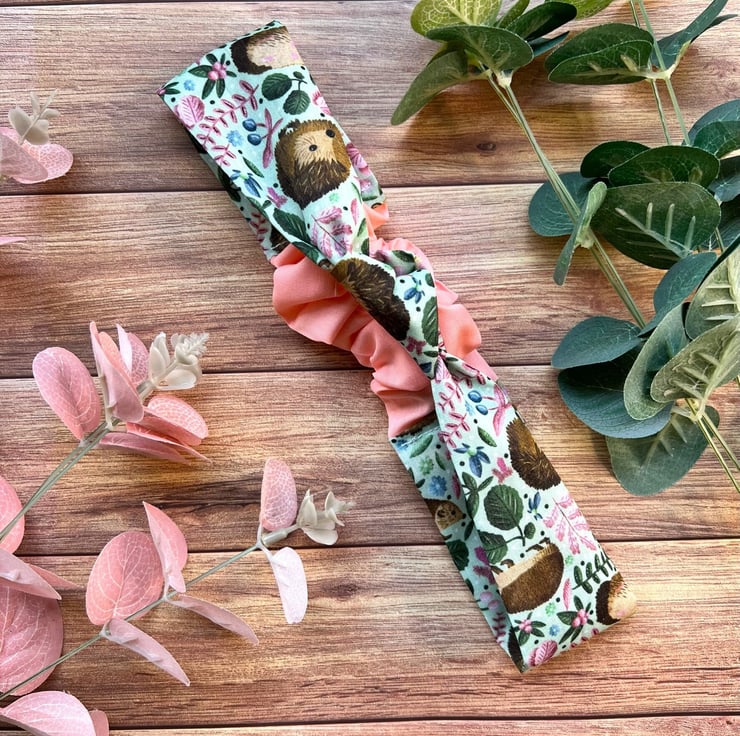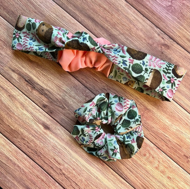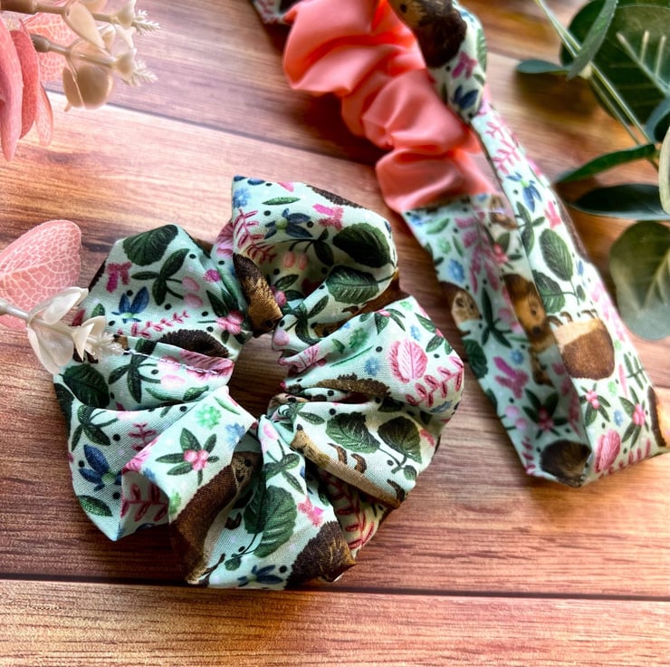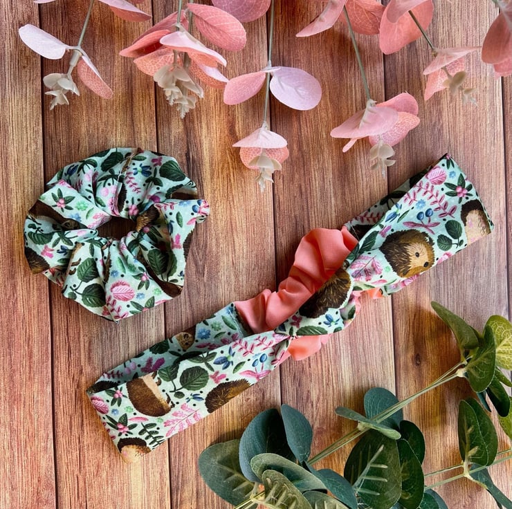 Discover the perfect present for any hedgehog enthusiast with our Hedgehog Lover Gift - Hair Accessories Gift Set. This charming set includes a matching scrunchie and headband, both crafted from bespoke patterned cotton. Perfect for any hair care routine, these accessories are as functional as they are stylish. Plus, 5% of the proceeds from your purchase support hedgehog conservation through the People's Trust for Endangered Species.