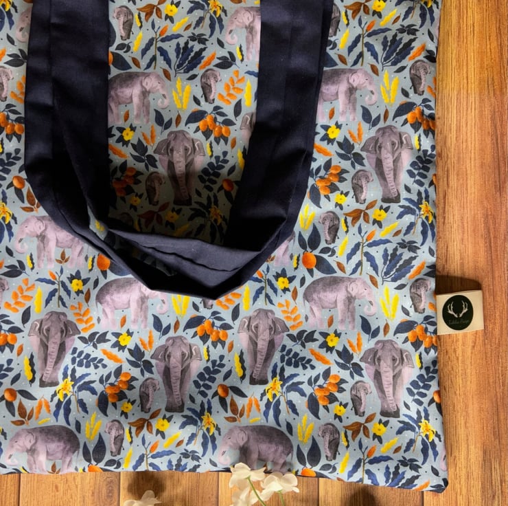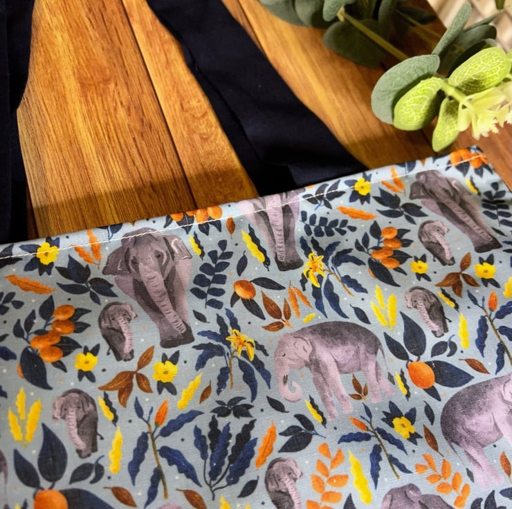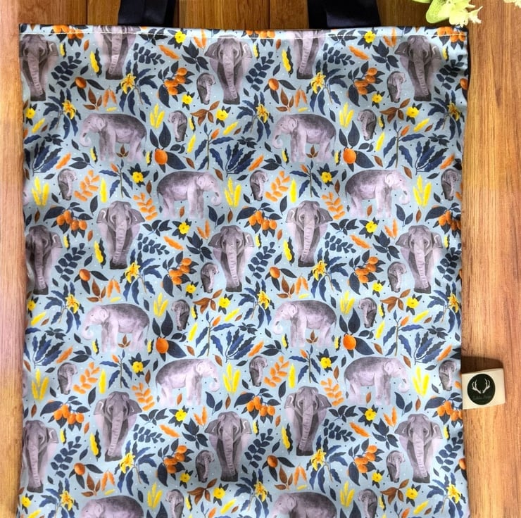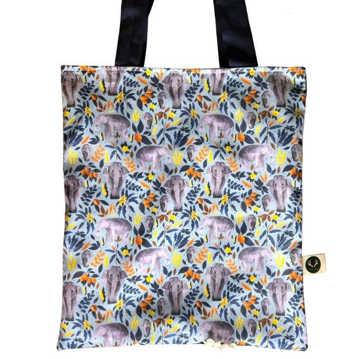 Asian Elephant Tote Bag Reusable Lined Shopping Bag, fold up bag, cotton tote, p