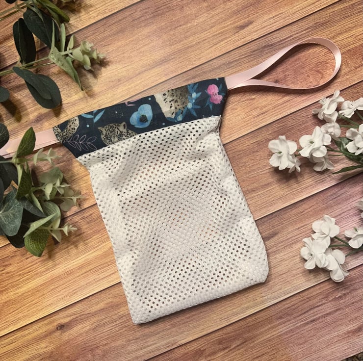 Practical but pretty, our washbags can be bought individually or as a set with the reusable makeup removal pads. The strip of pattern at the top makes it a cute match to other products in the range, with the white netting for functional washing. Using a drawstring effect at the top, simply tie a double bow and tuck the ribbons in for a secure wash.