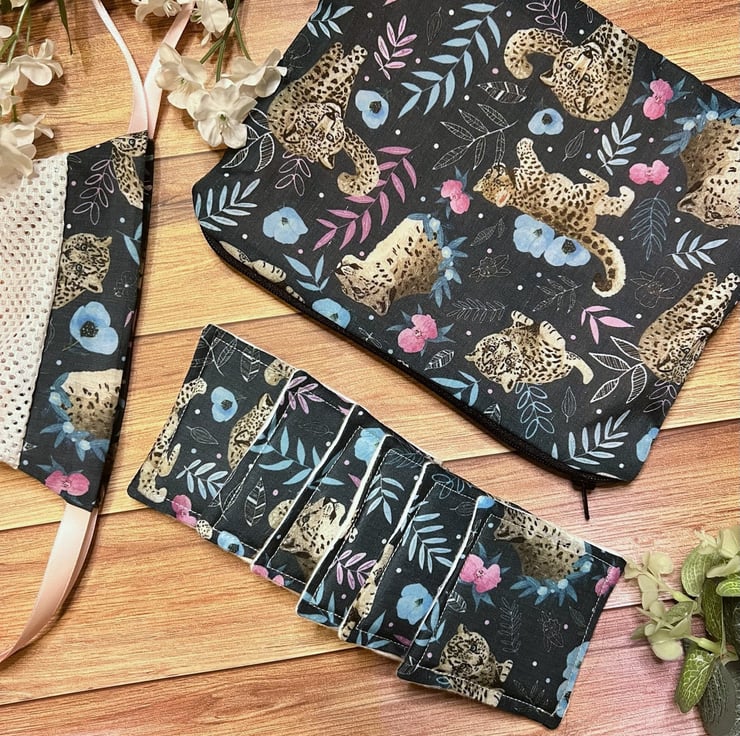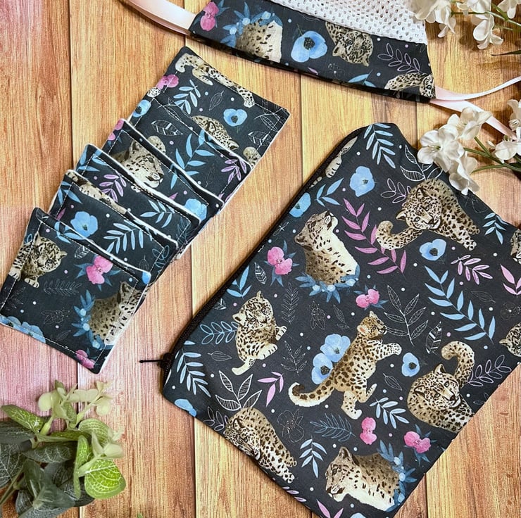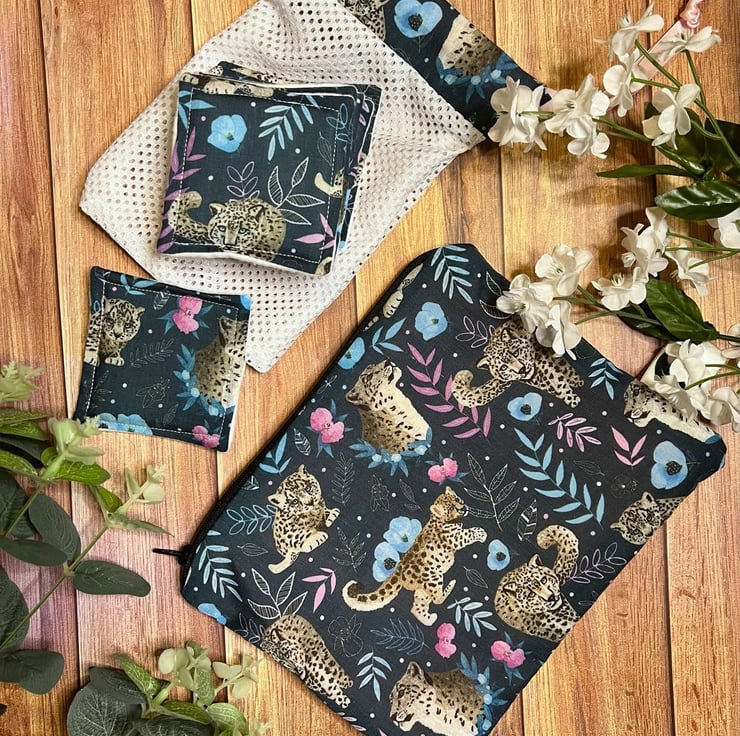 Our reusable pouch, makeup removal pads and washbag giftset is the perfect solution for the environmentally-conscious, simply use, wash and reuse with a convenient way to store and carry. The cute Snow Leopard pattern features across all three products, handmade right here in Wales.