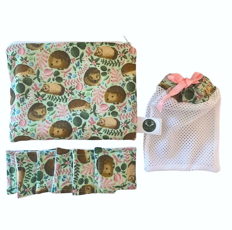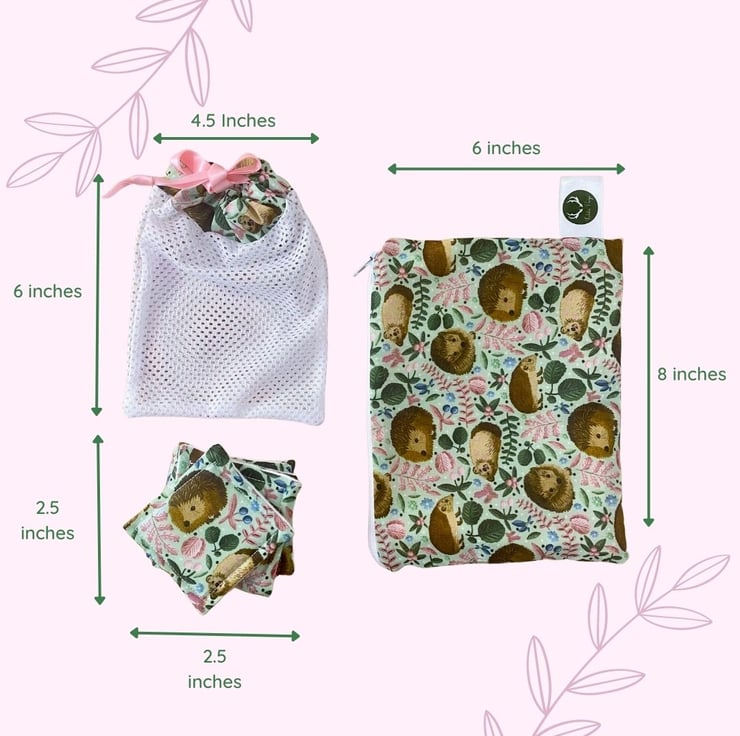 Our storage pouch, adorned with the bespoke hedgehog pattern designed by Tahlia Paige, offers a stylish and practical solution for keeping your skincare essentials organized. It's perfect for travel, at-home use, or as a thoughtful gift for your daughter's beauty regimen.