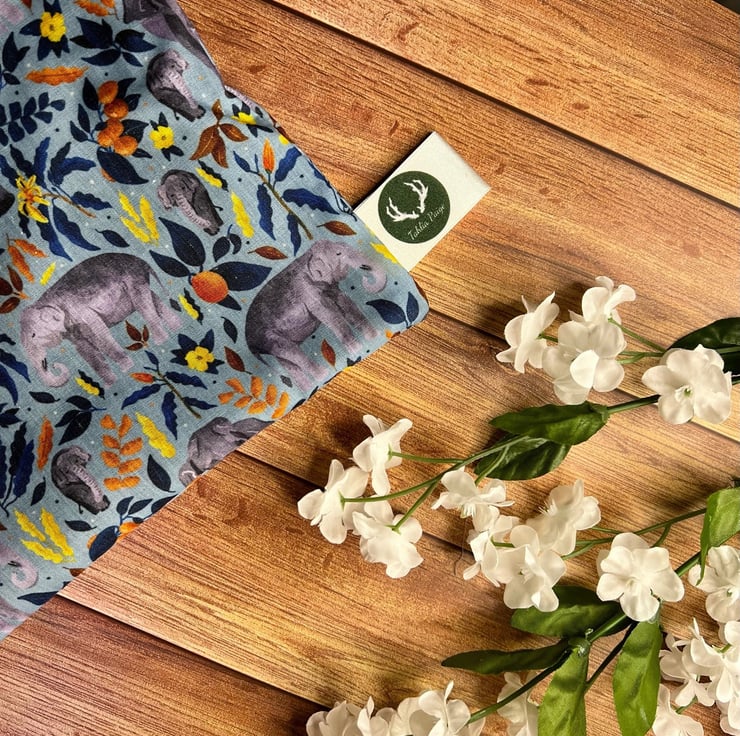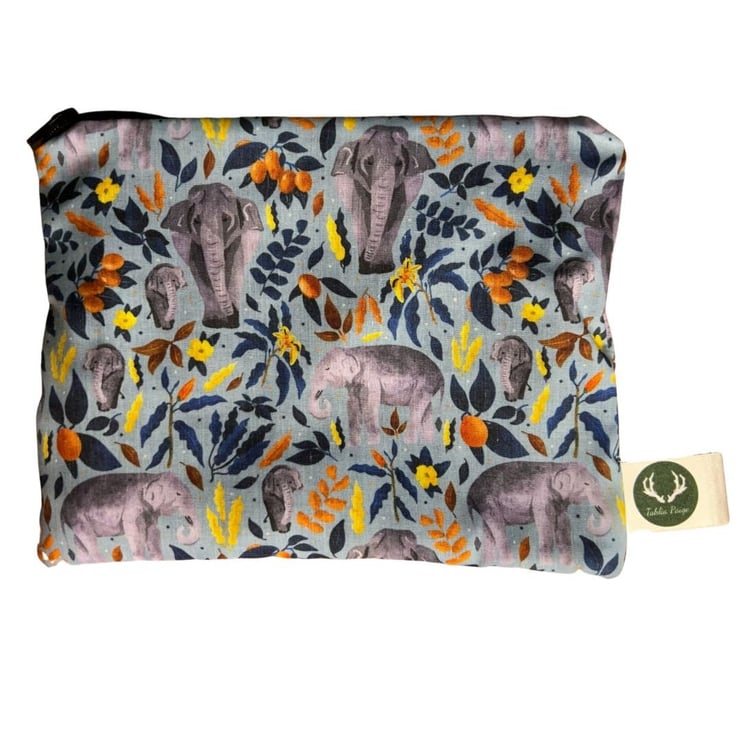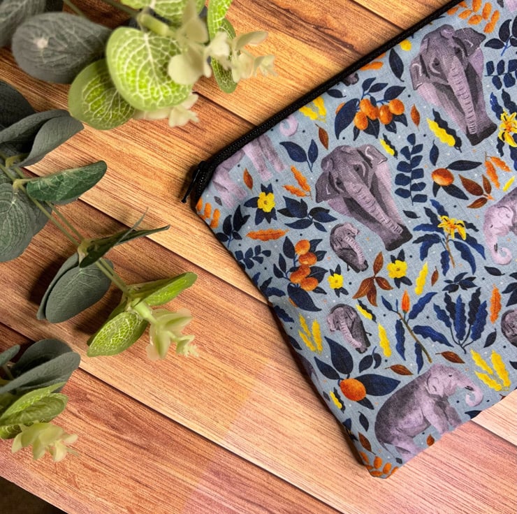 Brand new to the shop this season, our Asian Elephant pattern is featured here on this gorgeous and useful pouch.