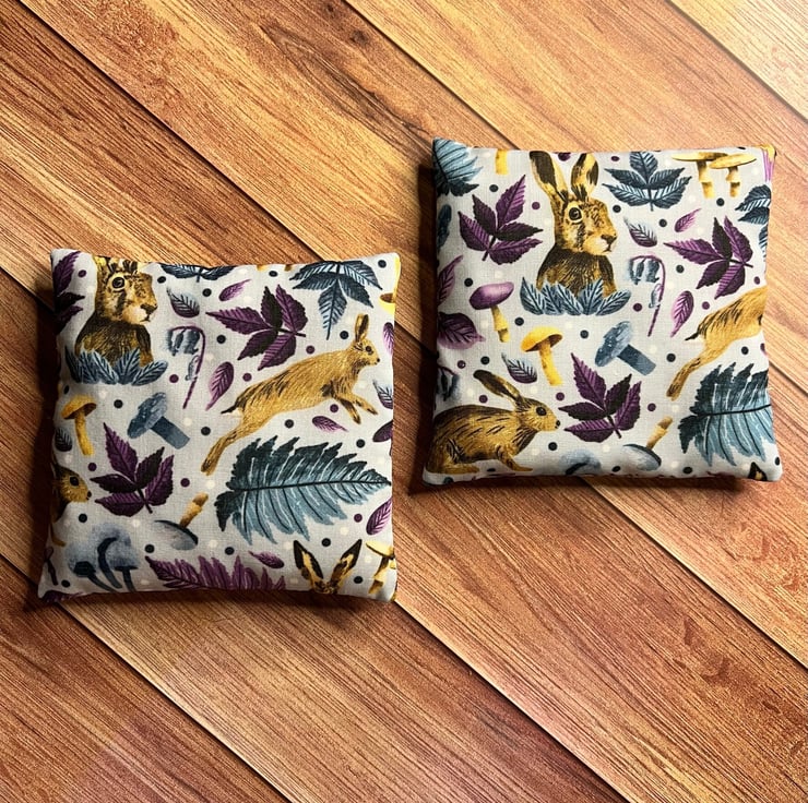 Our handwarmer range has expanded to include all of our favourite patterns! The Hare pattern features here on a matching pair of microwavable handwarmers, perfect for those cold winter walks or chilly evenings.