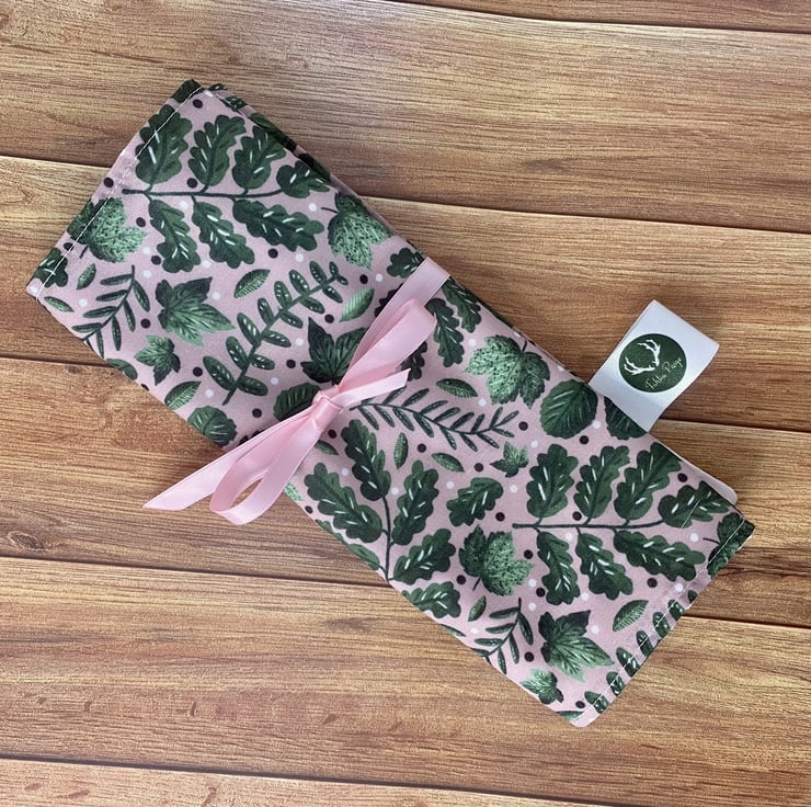 Our beautiful brush wraps make for the perfect gift idea for someone who loves organisation, and pretty patterns! The quirky foliage pattern in a fun green and pink colour palette is a standout design, combined with the easy function of the wrap, it makes a thoughtful and interesting purchase, ideal to store makeup brushes, art supplies, and more.