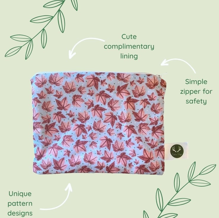 Our pouches are made with soft avio cotton and polycotton, big enough to fit a good supply of pens and pencils, or the makeup essentials. The pouches co-ordinate with a range of other products in the collection, get your matching makeup pads, or hair accessories, or more!