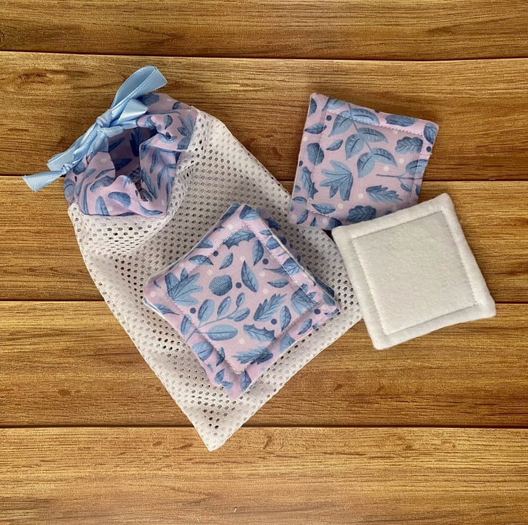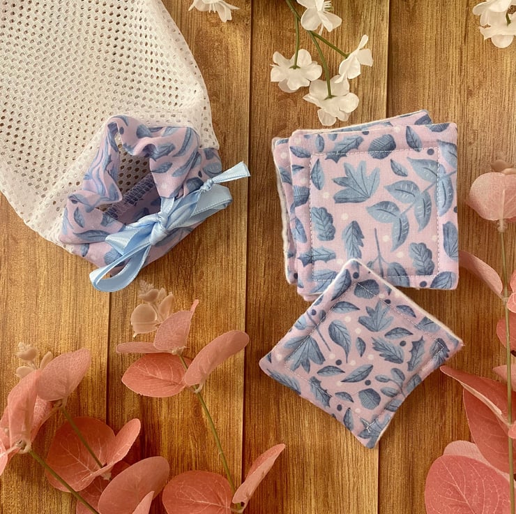Our Blue Foliage mini-skincare giftset is ideal for someone breaking into the world of eco-friendly skincare routines. Our soft brushed cotton skincare pads are reusable, washable, and soft for the skin, and our washbags are great for storing the pads while they get a wash in the machine to keep them all together.