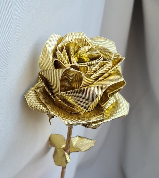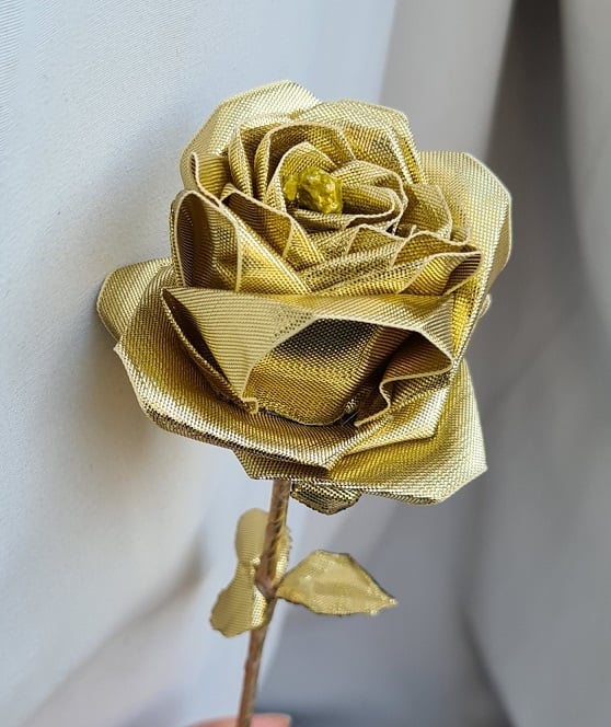 Gorgeous Handmade Gold Lame Ribbon Rose - Long Stem Artificial Flower Gift