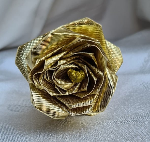 A fabulous handmade gift. One Gold Lame Ribbon Rose available only.