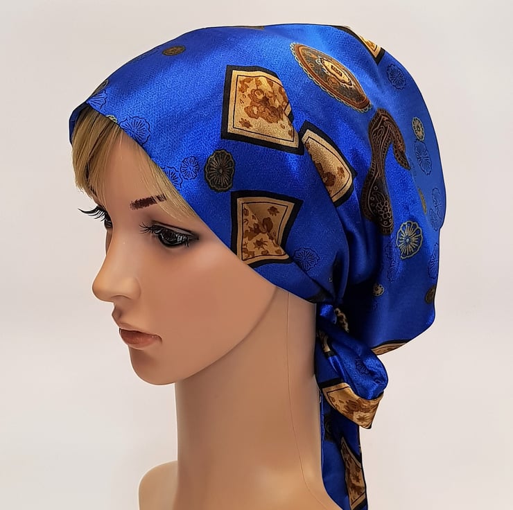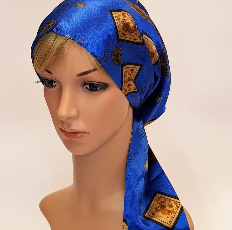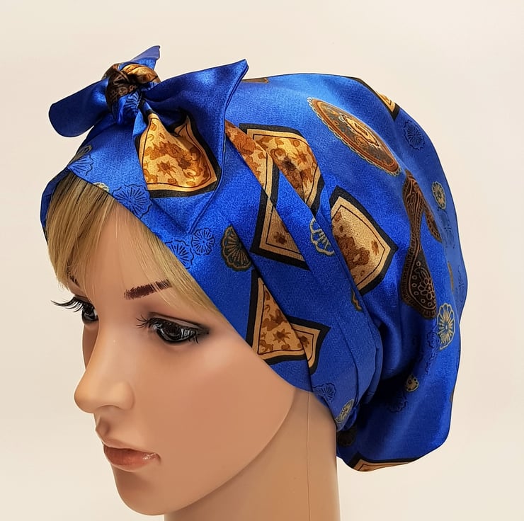 Elegant satin lined head scarf for women, natural curly hair head wear.