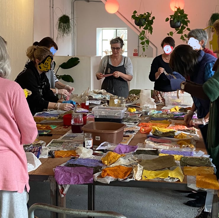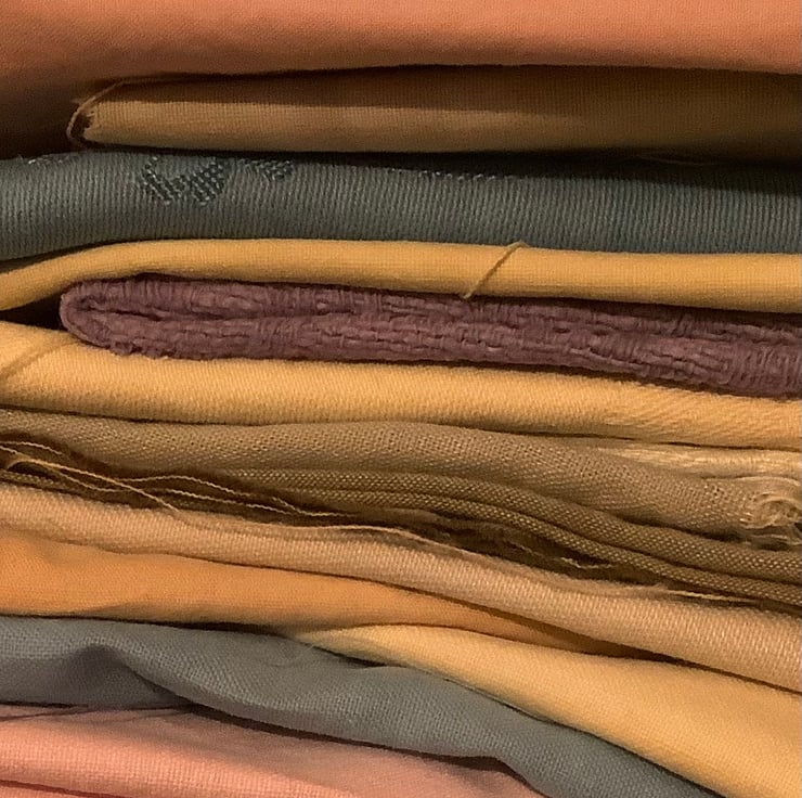 I dye recycled cottons and linens using natural dyes. Most are foraged or grown by myself. I use a range of natural plant material, all vegan and eco friendly. Onions, budleia, herbs, berries, indigo and woad are a few. I use iron and lemons to shift colours. I run workshops in Frome Somerset.m pack is for mixed colours of 70g