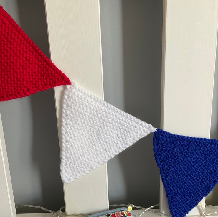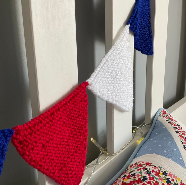 Perfect size for hanging up in a window or against a wall, each flag measures 11cm x 11cm, there are 2 of each colour stitched together to form a line.