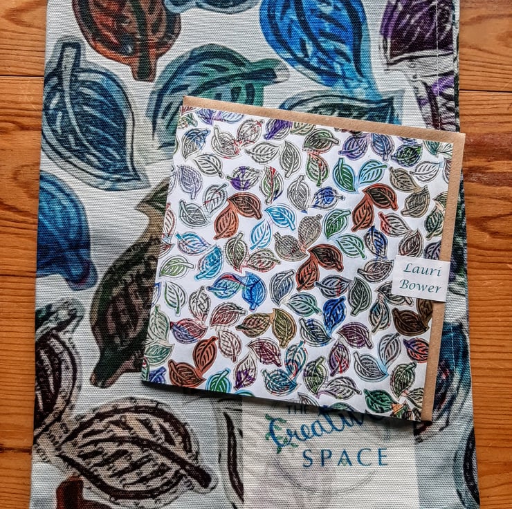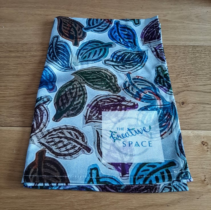 Organic cotton Tea towel printed from my Circle of Leaves paper collage design.