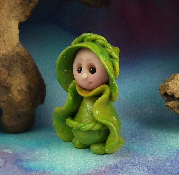 This is a 'one of a kind' creation having been entirely handmade without the use of moulds here at my studio on the Sussex Coast. Modelled with artist blend polymers, blushed before sealing with lacquer, Enid has sparkling black onyx eyes and variegated garden robes. Enid the Garden Gnome is just one and a half inches tall.