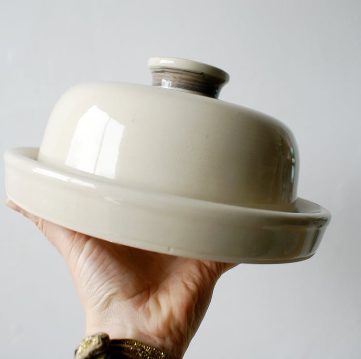 Designed to be both functional and decorative this dish will store butter pats or cheese in your fridge. It could also be used to hold garlic or onions and keep it away from other items to stop their fragrance tainting the taste of other foods.