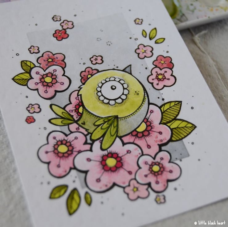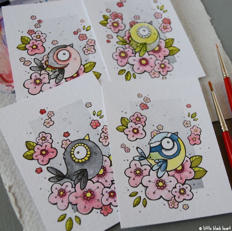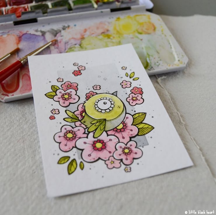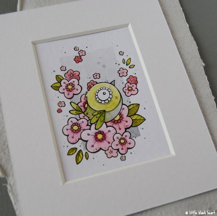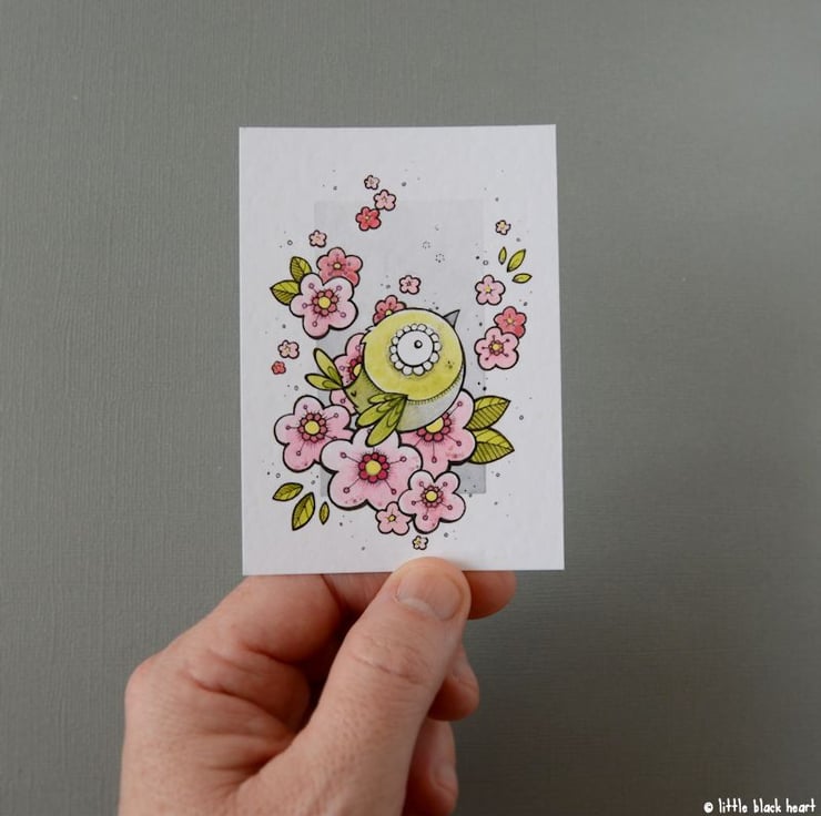 original artwork in artists pens, pencils, and watercolour paints, on textured white 300gsm cardstock. drawn with a tiny 0.05 nibbed pen, and carefully painted with just the very tip of a tiny paintbrush.